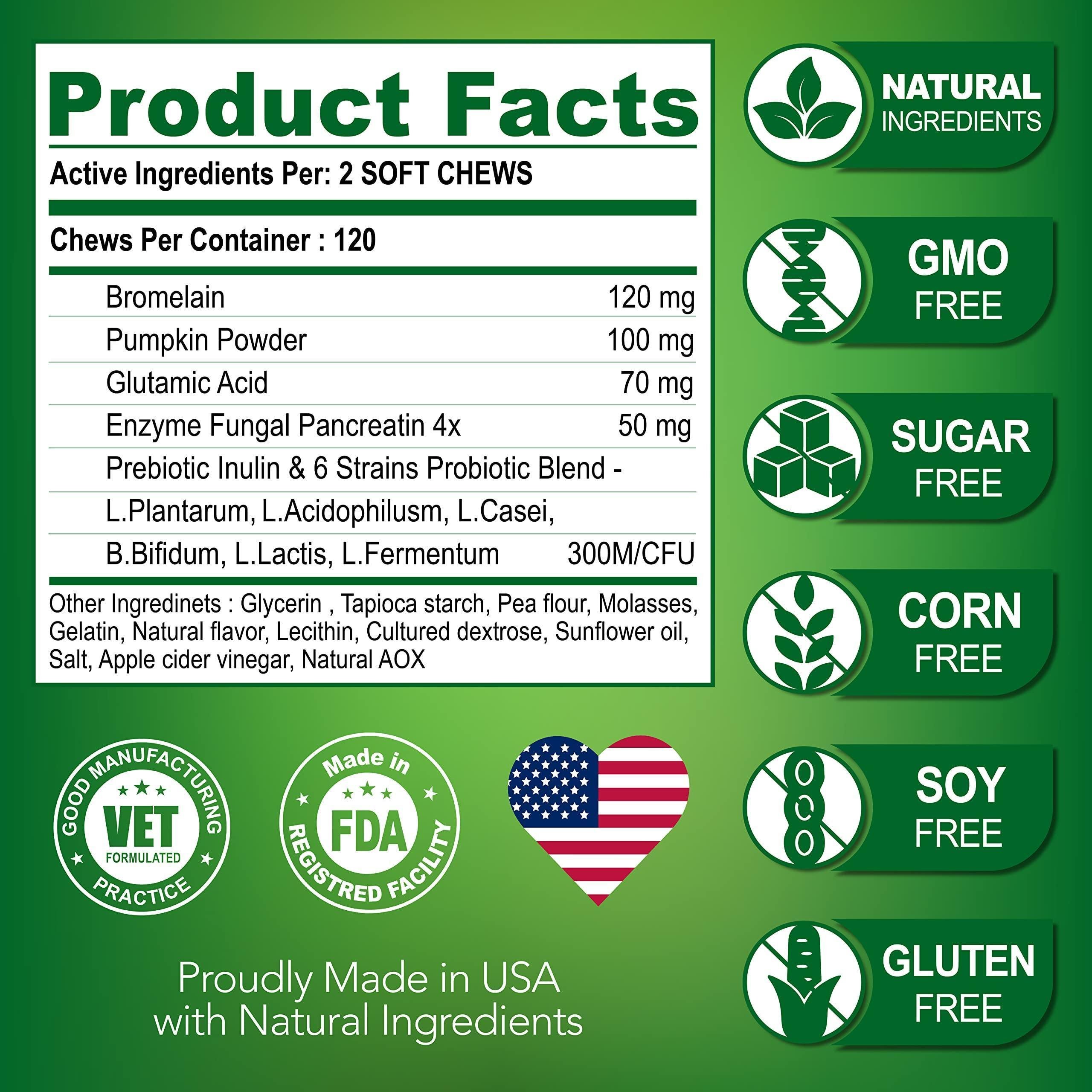 3.Premium Natural Ingredients Give Results No Added Sugar, Wheat, Corn, GMOs, Preservatives. We are committed to using only best ingredients that deliver results in our poop eating deterrent in dogs