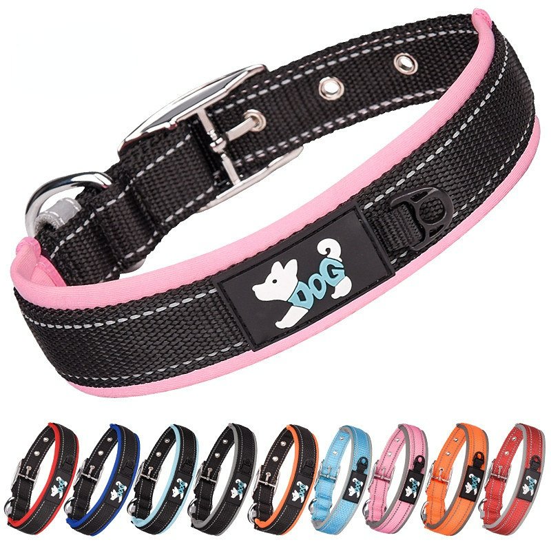• Medium and large dog collars are made of high-quality nylon materials. The stitching is neat and soft. The lining is explosion-proof anti-friction skin hair comfortable fit neoprene lining breathable sweat absorbing not stuffy pull traction nor tight neck