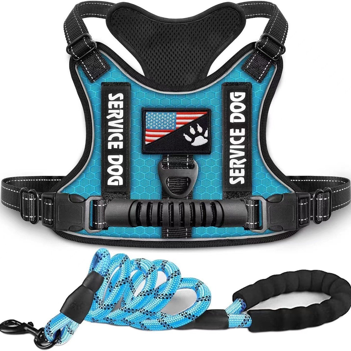 Home > Pet Harness And Leash Set For Dog & Cat; Adjustable No Pull Service Dog Vest Harness For Walking - Lake Blue - M
