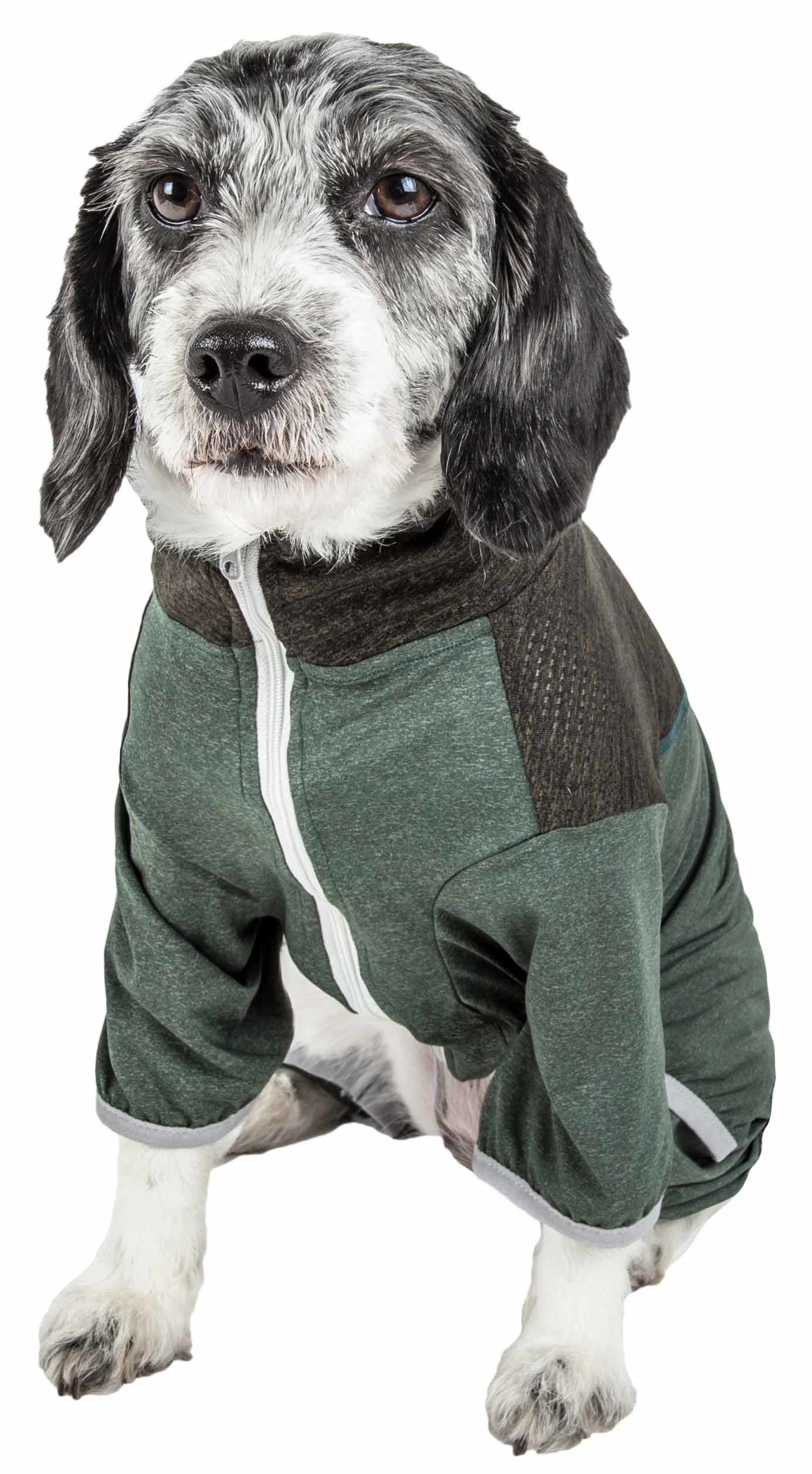 Home > Pet Life Active 'Embarker' Heathered Performance 4-Way Stretch Two-Toned Full Body Warm Up - Green - Large