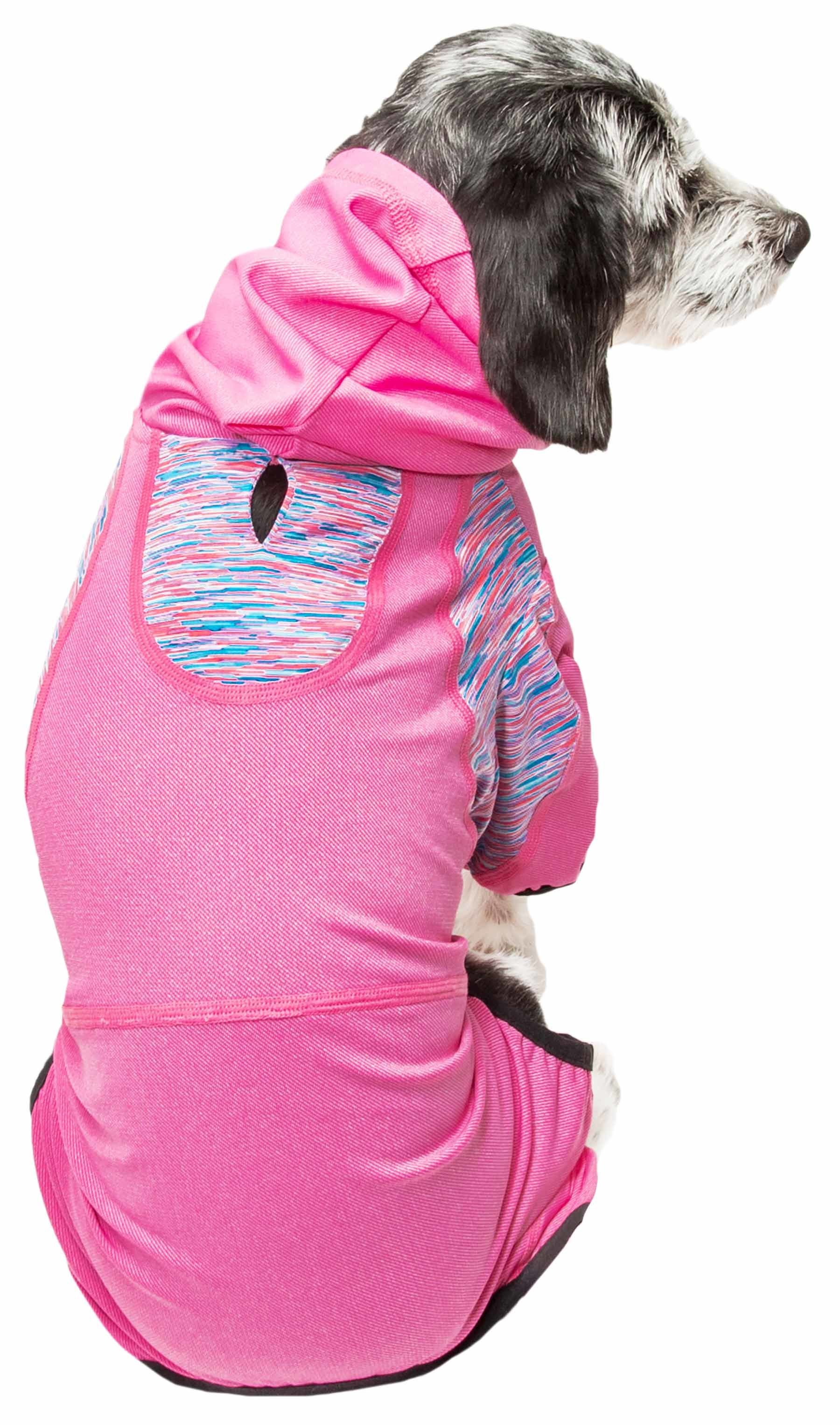 Pet Life Active 'Pawsterity' Heathered Performance 4-Way Stretch Two-Toned Full Bodied Hoodie - Pink - Medium