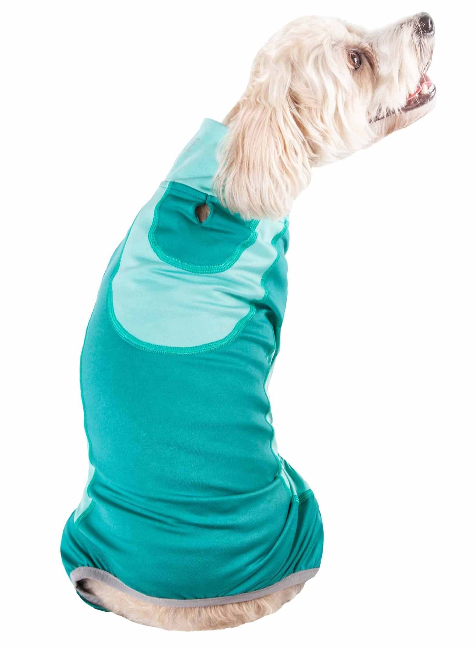 Home > Pet Life Active 'Warm-Pup' Heathered Performance 4-Way Stretch Two-Toned Full Body Warm Up - Green - X-Small
